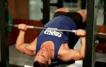 Выполнение: Положите гантель на скамью, потом повернитесь и лягте на скамью поперек, упершись ногами в пол. Возьмите гантель обеими руками и держите ее прямо над грудью, прижав ладони к внутренней стороне верхнего диска.