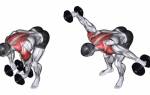 - Тяжелые гантели взять с полы. Поясничный отдел слегка прогнуть и зафиксировать положение.